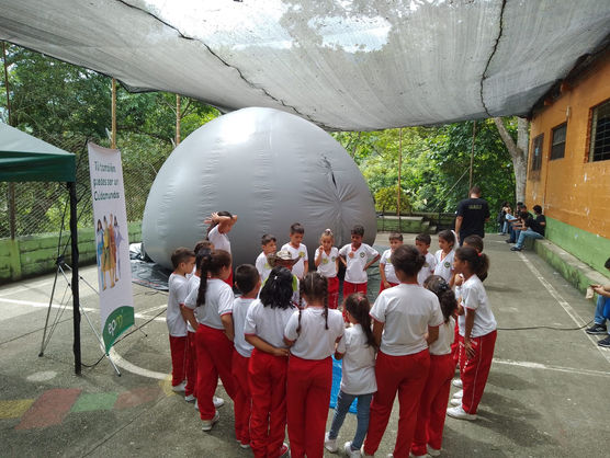 El AULA 360º es una experiencia de inmersión colectiva en la que simulamos emocionantes viajes por el Universo, exploramos el pasado y el futuro de la tierra, estimulamos la imaginación y nos maravillamos con la diversidad que existe en los territorios. Este domo itinerante puede ser llevado desde salones de clase hasta espacios de recreación y esparcimiento, con necesidades mínimas de instalación.